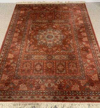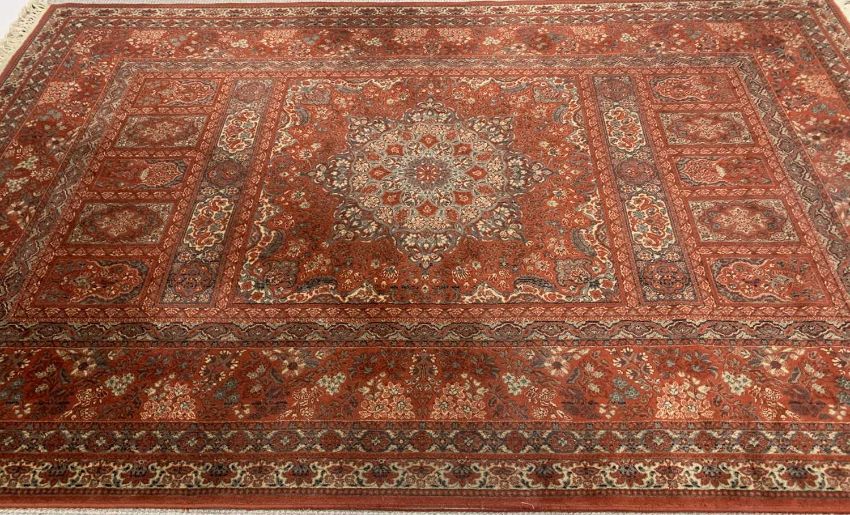 LARGE KESHAN RUG, rust/red ground with multifloral border, central oblong and star pattern throughout, 300 x 200cmsProvenance: private collection Conwy