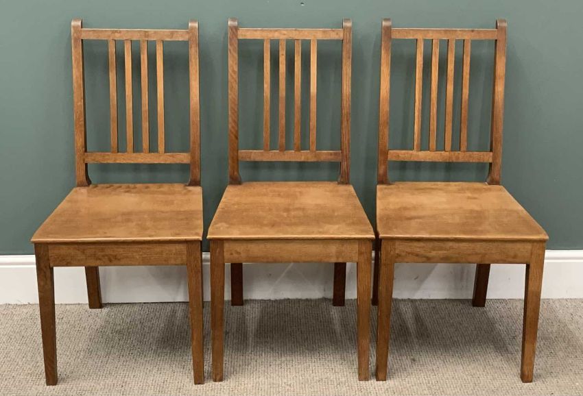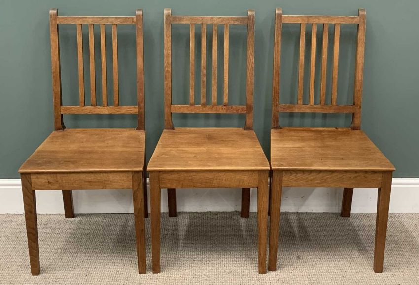 ARTS & CRAFTS OAK REFECTORY TABLE of pegged construction, 74 (h) x 191 (w) x 85cms (d) and a set of six oak and spindle back chairs, 96cms (h)Provenance: private collection Conwy