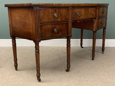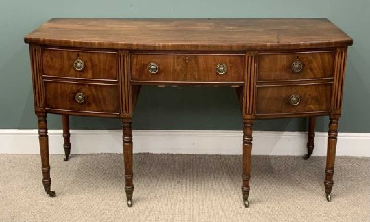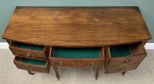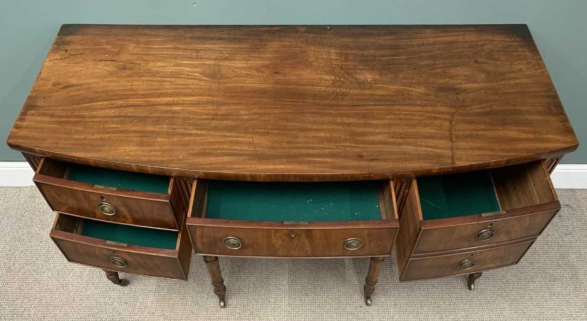 VICTORIAN MAHOGANY BOW FRONT SIDEBOARD with brass ring handles and on turned supports and castors, 93 (h) x 168 (w) x 71cms (d)Provenance: private collection Flintshire