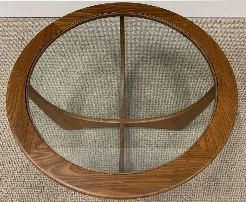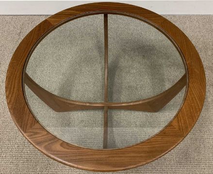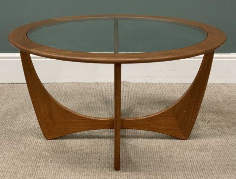 MID CENTURY G-PLAN 'ASTRO' COFFEE TABLE by Victor Wilkins, teak with glass top, 45 (h) x 84cms (diam)Provenance: private collection Conwy