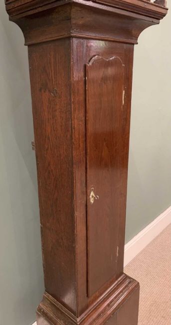 19TH CENTURY SHROPSHIRE LONGCASE CLOCK oak encased, thirty-hour, brass dial to John Joyce of Ellesmere, single weight and pendulum, 207 (h) x 54 (w) x 33cms (d)Provenance: private collection Gwynedd
