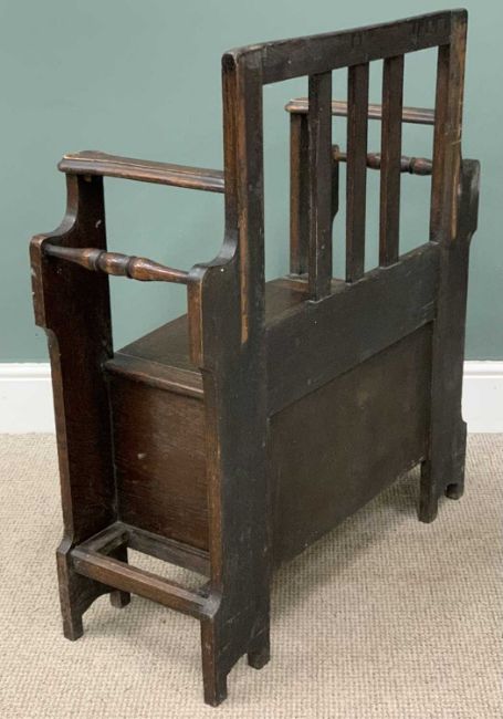 TWO FARMHOUSE CHAIRS & EDWARDIAN OAK BOX SEAT SETTLE having a single seat, 96 (h) x 82 (w) x 34cmsProvenance: private collection Conwy