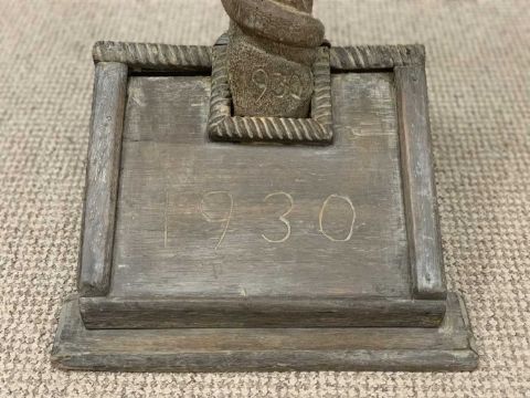 SMALL WALL CUPBOARD & CARVED LECTURN 'GWELL DYSG NA GOLOD 1930', 110cms (h) cupboard, 67 (h) x 56 (w) x 19cms (d)Provenance: private collection Conwy