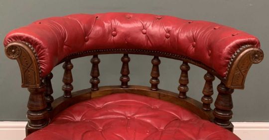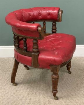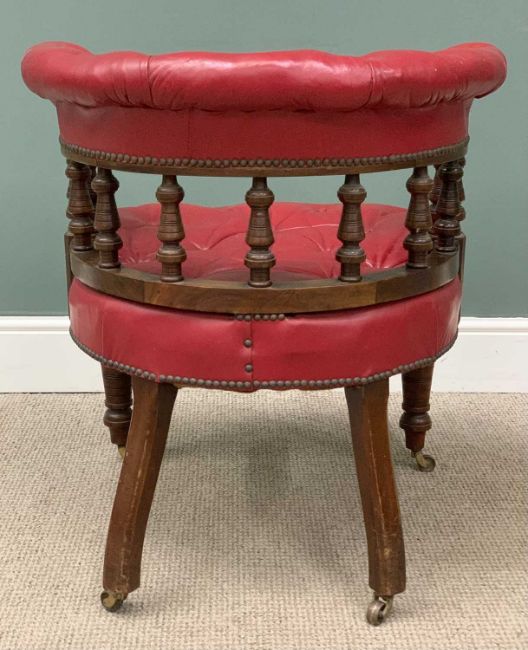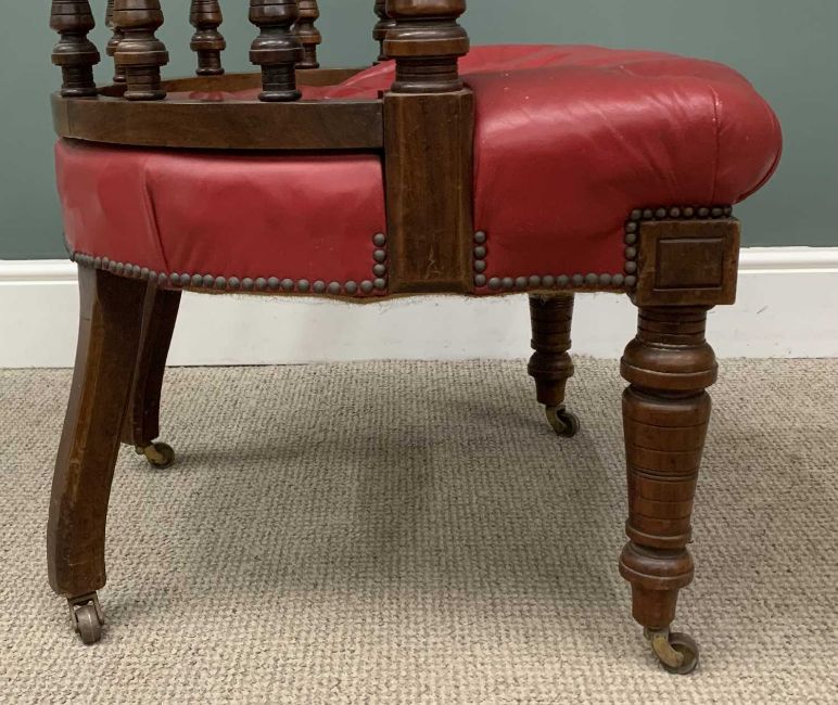 BUTTONED LEATHER OFFICE CHAIR in burgundy, on castors, 76 (h) x 79 (w) x 60cms (d)Provenance: private collection Gwynedd