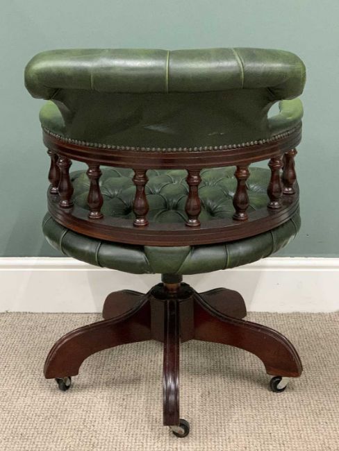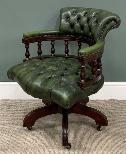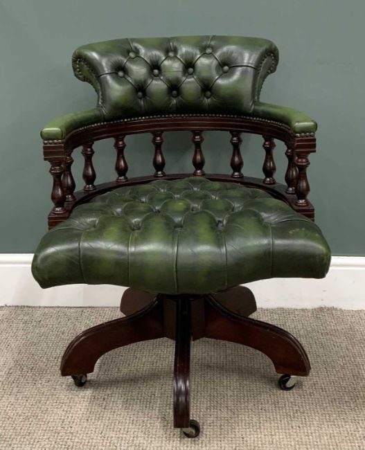 OFFICE SWIVEL CHAIR having buttoned green leather upholstery to back and seat, 84 (h) x 63 (w) x 52cms (d)Provenance: deceased estate Cheshire