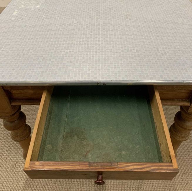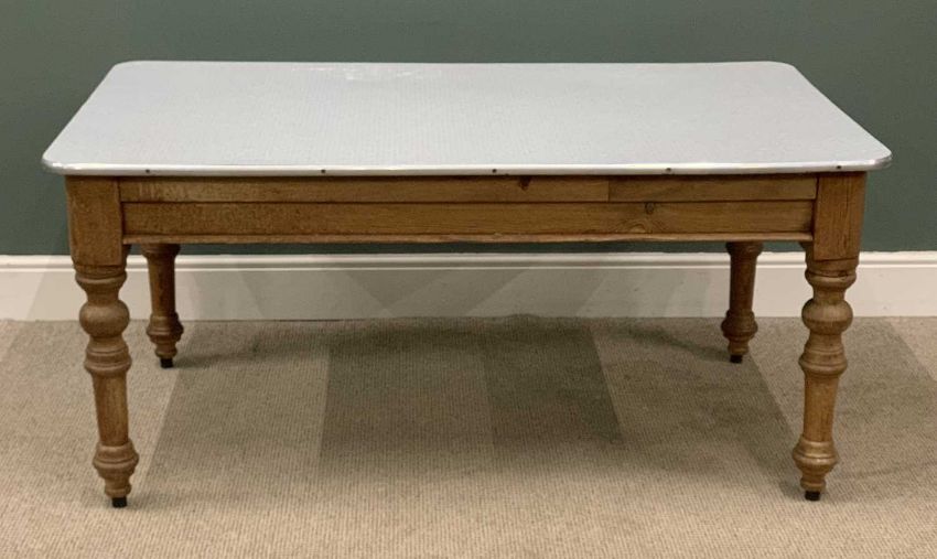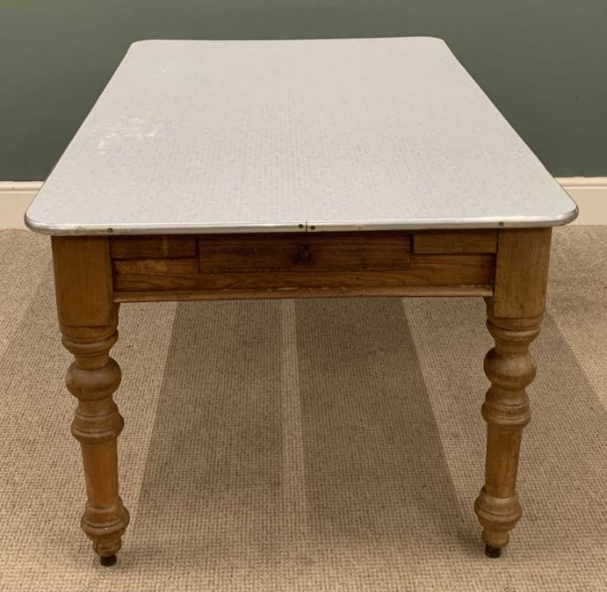 ANTIQUE PITCH PINE FARMHOUSE TABLE having formica top and end drawer, 72 (h) x 153 (w) x 92cms (d)Provenance: private collection Gwynedd