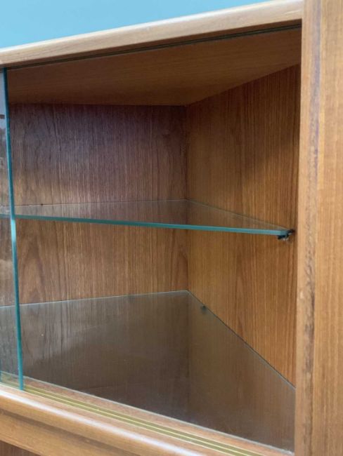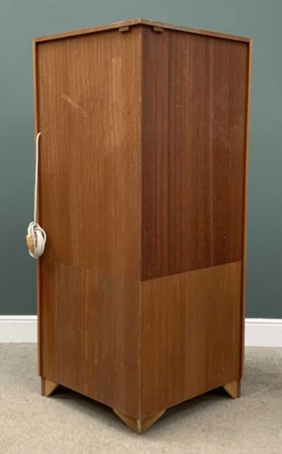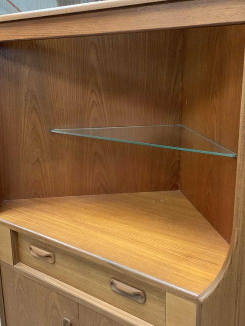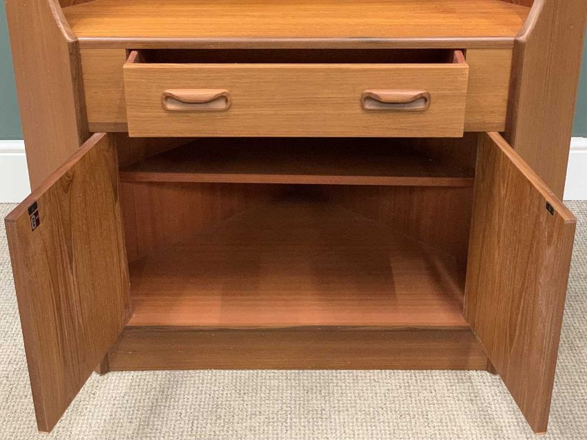 MID-CENTURY G-PLAN TEAK CORNER CUPBOARD having a central drawer and base cupboard doors and upper shelves, 171 (h) x 101 (w) x 60cms (d)Provenance: private collection Conwy
