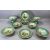 19TH CENTURY ENGLISH PORCELAIN DESSERT SERVICE, each piece with a green and gilded border and painted landscape to the centre, including six comports, 14 pieces totalProvenance: private collection Conwy