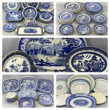 LARGE COLLECTION OF 19TH CENTURY STAFFORDSHIRE BLUE & WHITE TRANSFER WARE including platters, meat plates, dinner plates, tureens etc.Provenance: private collection Conwy