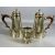 EDWARD VII SILVER CHOCOLATE POTS A PAIR, left and right facing with wooden side handles and domed lids with finials, conical bodies with stepped base rims, engraved with lion's head crest, with matching cream jug, London 1909, William Comyns and Sons, 17.5cms (h), 30gms grossProvenance: private collection Conwy