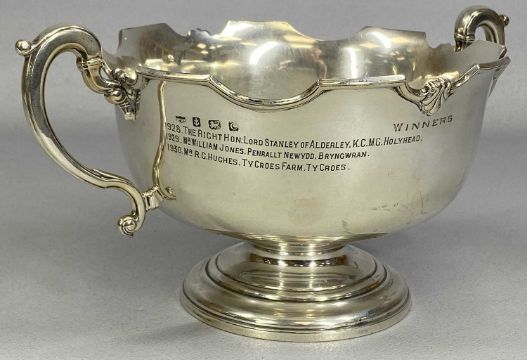 EDWARD VII TWO HANDLED PRESENTATION BOWL with castellated rim, on circular foot, inscription 'Anglesey Agricultural Society 1928', Birmingham 1902, Mappin & Webb, 13cms (h), 13ozProvenance: private collection Conwy