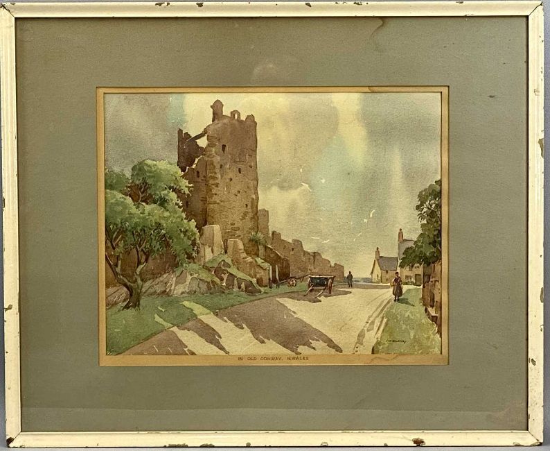 JOHN HAROLD BLAKELEY (English 1887 - 1978) watercolour - 'In old Conway, N. Wales', 34 x 43cms together with an early 19th Century watercolour of a Georgian style church, 37 x 53cmsProvenance: private collection DenbighshireComments: framed and glazed