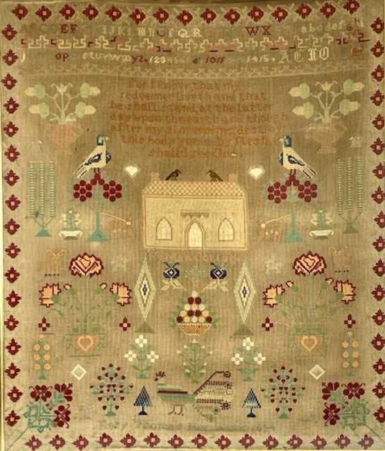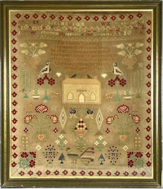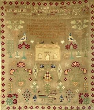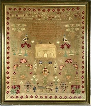 LARGE WOOLWORK SAMPLER with alphabet and verse, birds, flowers, house and trees, Mary Thomas 1894, 77 x 85cmsProvenance: private collection ConwyComments: framed and glazed