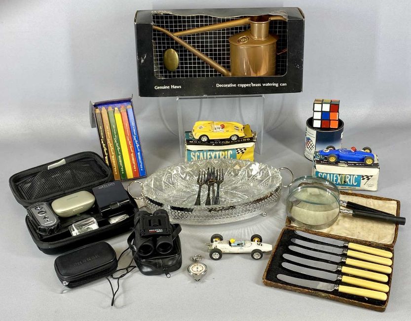 VARIOUS ITEMS including boxed Rubik cube puzzle, vintage boxed Scalextric vehicles and other electric itemsProvenance: private collection Anglesey