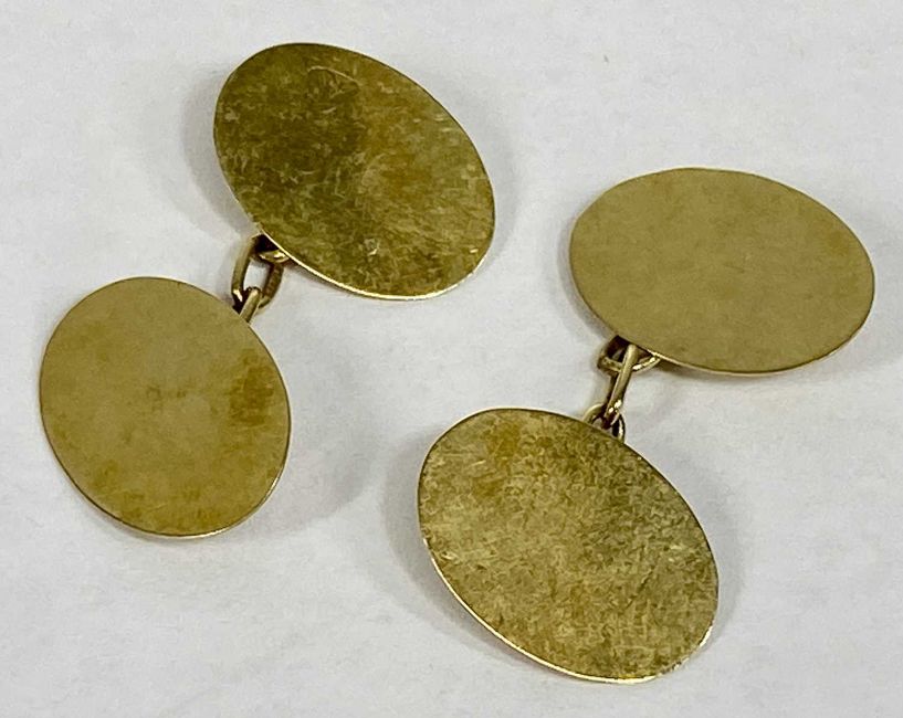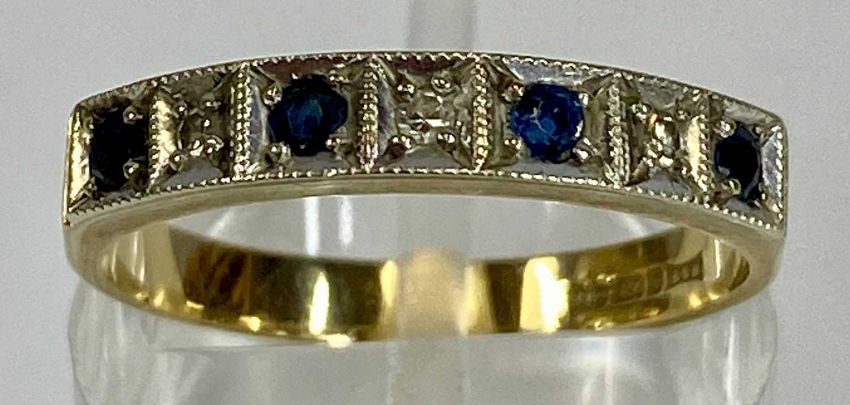 9CT GOLD JEWELLERY, ring set with a band of diamonds and sapphires, size N, pair of oval cufflinks, ring set with seven clear stones, size N and a child's signet ring, size C, 7.2gms grossProvenance: private collection Anglesey