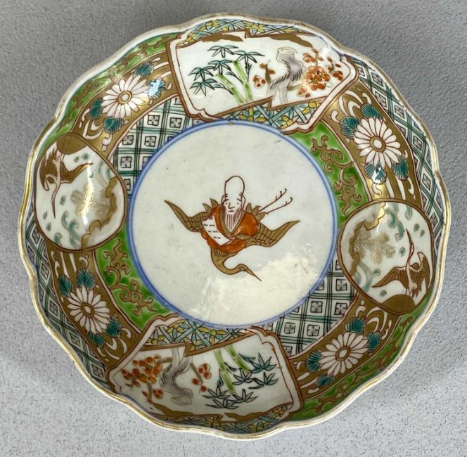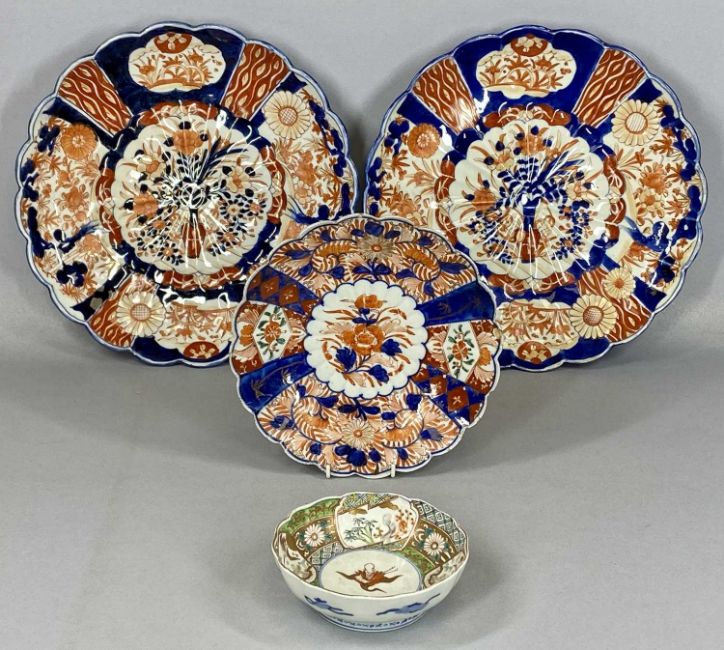TWO JAPANESE IMARI CIRCULAR CHARGERS, early 20th century with traditional decoration, 36cms (diam.), similar smaller charger, 25cms (diam.) and Japanese Imari circular shallow dish, 15.5cms (diam.)Provenance: private collection Conwy