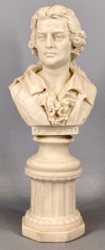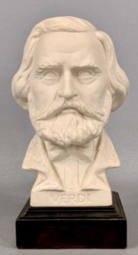 FOUR PARIAN WARE BUSTS of composers Schiller, 40cms (h), Beethoven, on marble pedestal, 35cms (h), Verdi, 22cms (h) and Grieg, 22cms (h)Provenance: private collection Conwy