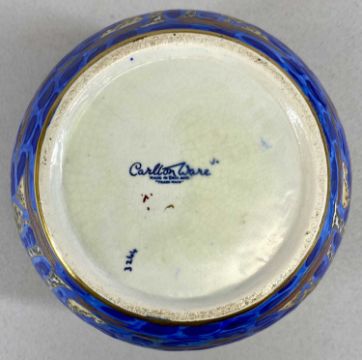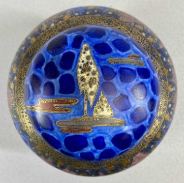 CARLTON WARE ART DECO GINGER JAR & COVER, 'Forest Tree' pattern no. 3244, enamelled in colours on a matte blue ground, highlighted in gilt, printed and painted marks, 20cms (h)Provenance: private collection Conwy
