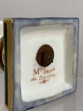 SEVRES WHITE PORCELAIN BUST OF NAPOLEON on a gilt and cobalt blue square base, 16cms (h)Provenance: private collection Conwy