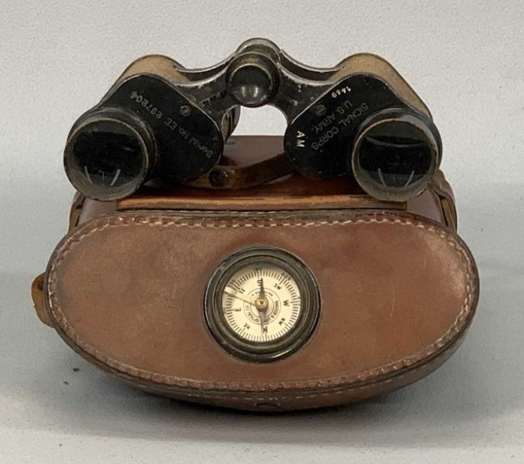 BAUSCH & LOMB BINOCULARS for the US Army Signal Corps, serial no. E877E04, the leather case with compass inset in lidProvenance: private collection Denbighshire