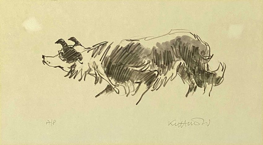 SIR KYFFIN WILLIAMS RA (Welsh 1918 - 2016) artist's proof print - working sheepdog, 25.5 x 46cmsProvenance: private collection DenbighshireComments: framed and glazed