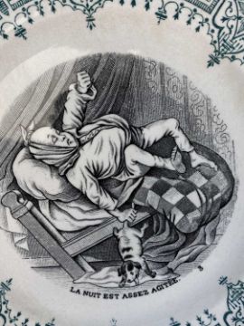 ASSORTED CERAMICS 19th Century and later including 11 Sarreguemines transfer decorated humorous plates, 19cms (diam.), various Wedgwood green glazed leaf design dishes, Sylvac cream glazed jug no. 1685, 18cms (h), Rubian Art Pottery biscuit barrel and cover etc.Provenance: private collection Conwy