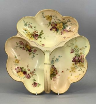 ROYAL WORCESTER BLUSH IVORY HORS D'OEUVRES DISH, three division, decorated with oval sprays, puce backstamp 30cms (w)Provenance: private collection Conwy
