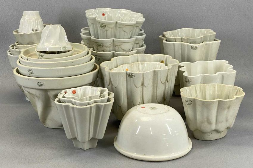 LARGE & VARIED ASSORTMENT OF CREAM CERAMIC JELLY MOULDS including ShelleyProvenance: private collection Conwy