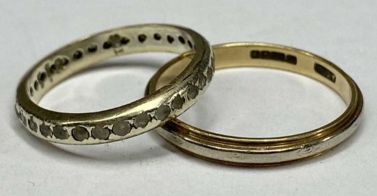 9CT GOLD ETERNITY RING, size K along with 9ct yellow and white gold wedding band, size P, 3.9gms gross Provenance: private collection Ynys Môn