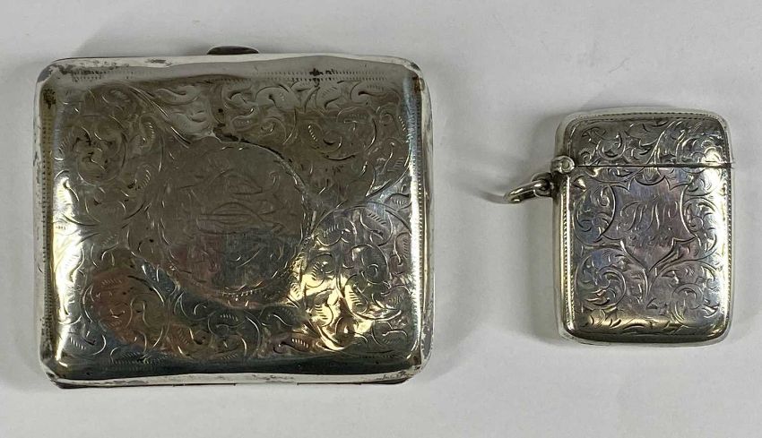 EDWARD VII SILVER CIGARETTE CASE & VESTA CASE, cigarette case Birmingham 1910, Williams Ltd., 8.5 x 7cms, vesta case Birmingham 1900, J. R. Ltd, 5 x 4cms, 3ozt grossProvenance: private collection Conwy