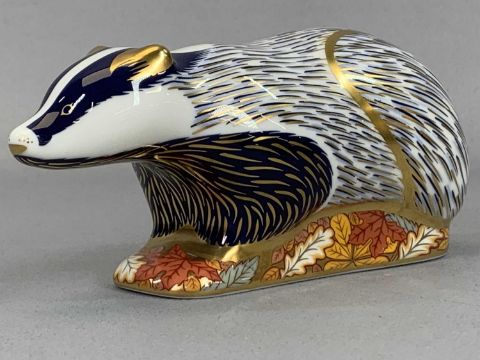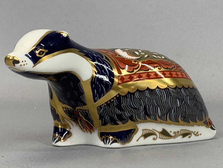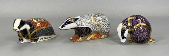 THREE ROYAL CROWN DERBY PAPERWEIGHTS including 'Woodland Badger' and 'Moonlight Badger'Provenance: private collection Conwy