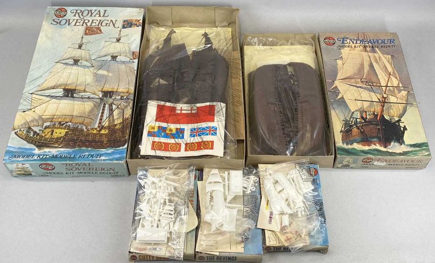 AIRFIX FIVE BOXED PLASTIC SAILING BOAT MODEL KITS, Royal Sovereign, Endeavour, Cutty Sark and Revenge (2), contents appear complete but uncheckedProvenance: private collection Conwy