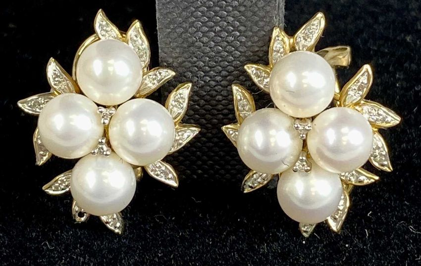 PAIR OF 9CT GOLD SIMULATED PEARL CLUSTER EARRINGS, 8.5gmsProvenance: private collection Conwy