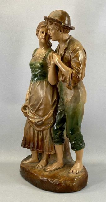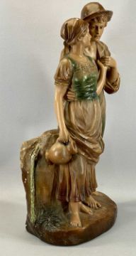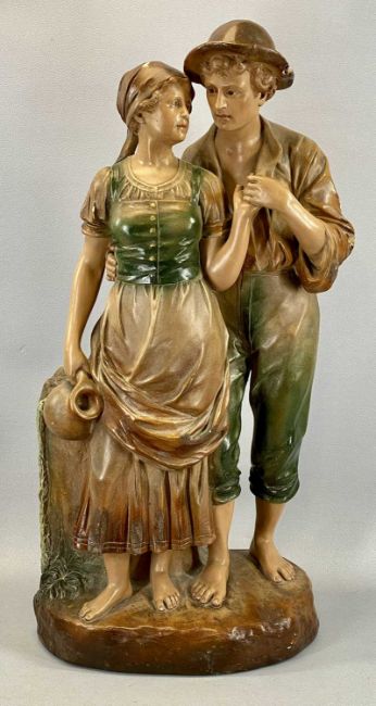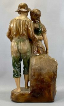 LARGE ART STUDIO PLASTER MODEL OF PEASANT COUPLE impressed no. 184 on reverse, 72cms (h)Provenance: private collection Ynys Môn