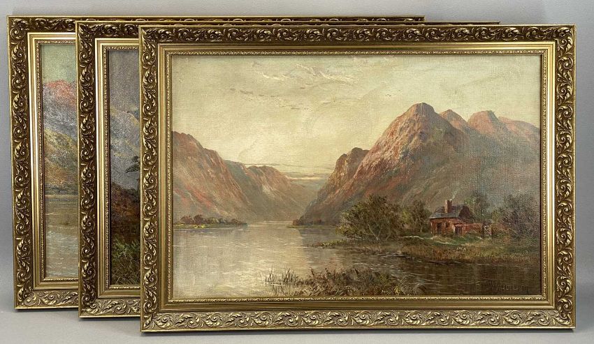 ‡ FRANCIS E. JAMIESON (Scottish 1895-1950) three oils on canvas - entitled verso 'Loch Goil, Ayrshire', 'Kilchurn Castle, Loch Awe Argyll' and 'Near Dowally, Strathtay Perthshire', 39 x 60cmsProvenance: private collection ConwyComments: framed