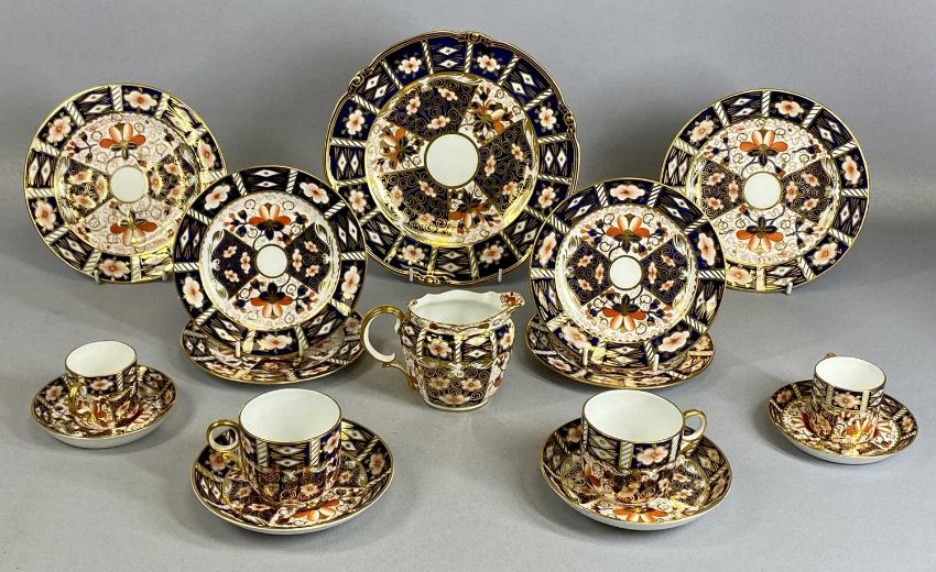 ROYAL CROWN DERBY IMARI PATTERN 2451 TABLEWARE comprising two teacups and saucers, two coffee cans and saucers, milk jug and seven various platesProvenance: private collection Denbighshire