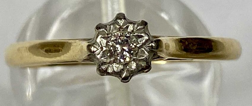 18CT GOLD RING, illusion set with small diamond, size P, 2.8gmsProvenance: deceased estate Conwy