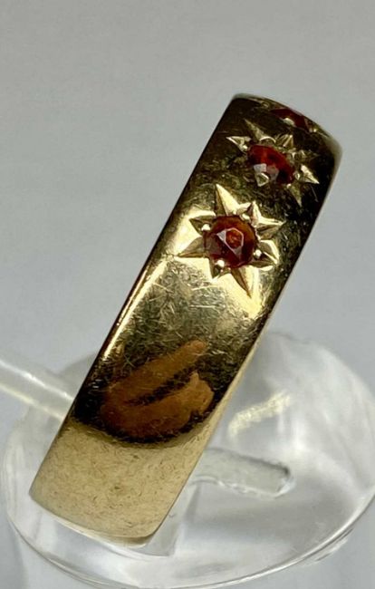 9CT GOLD RING set with three small rubies, size U, 4.8gmsProvenance: deceased estate Conwy