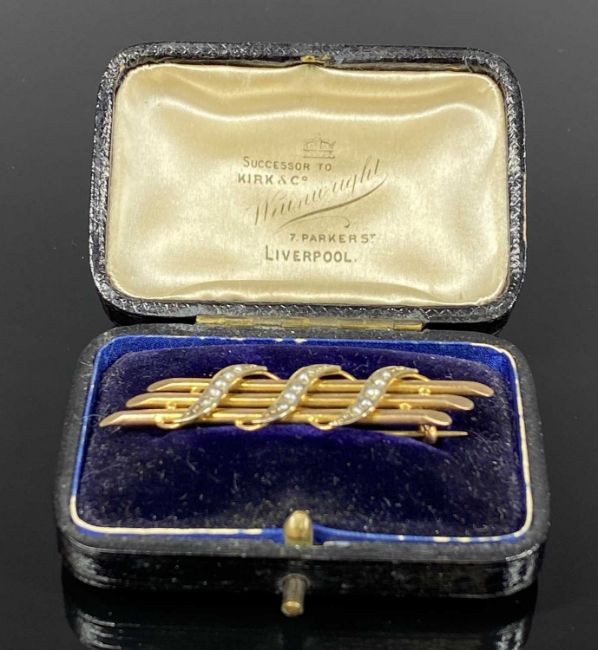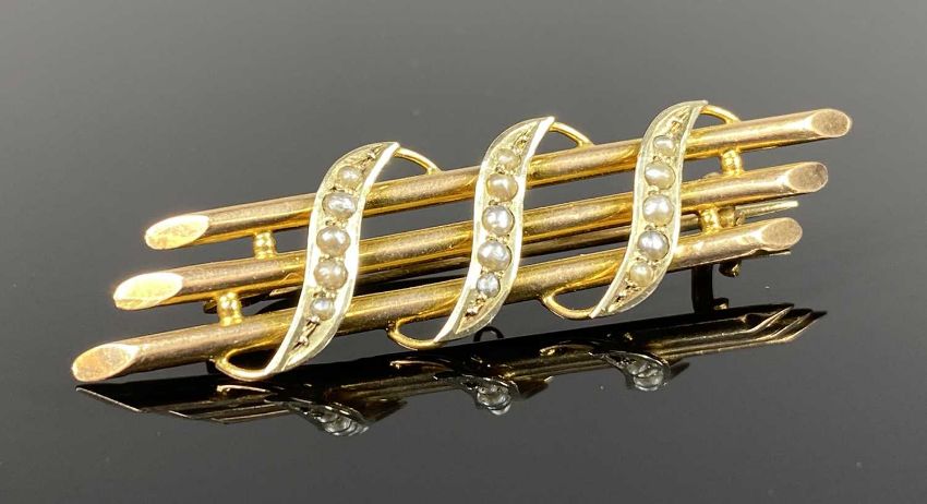 VICTORIAN 9CT GOLD BAR BROOCH set with split seed pearls, 2.5gmsProvenance: private collection Conwy
