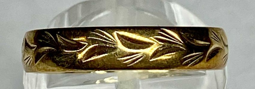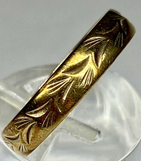 TWO 9CT GOLD WEDDING BANDS, one engraved with leaves, sizes O & L, 3.3gms (gross)Provenance: deceased estate Conwy