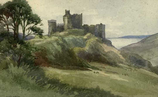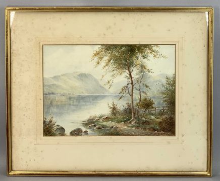 JOHN THWAITE watercolour - lake scene, 25 x 36cms and a watercolour by Walter Dyke Carter titled 'Castell Manorbier', 24 x 37cmsProvenance: private collection DenbighshireComments: framed and glazed