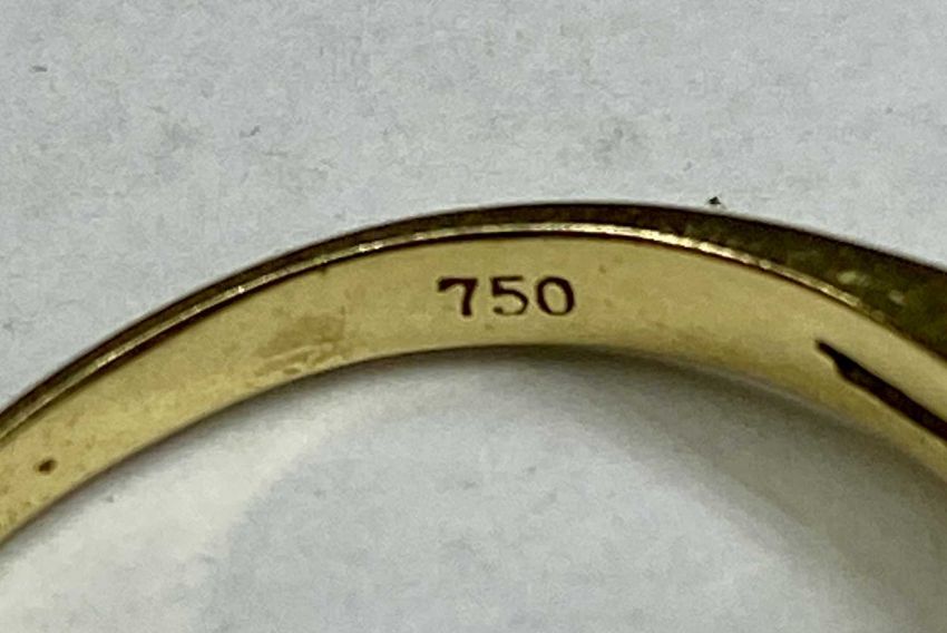 18CT GOLD RING set with dark sapphire and diamond chips to shoulders, size O, 4.0gmsProvenance: deceased estate Conwy