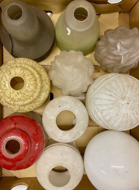 ASSORTMENT OF 25 GLASS LIGHT SHADES, 19th century and later including some globularProvenance: private collection Conwy
