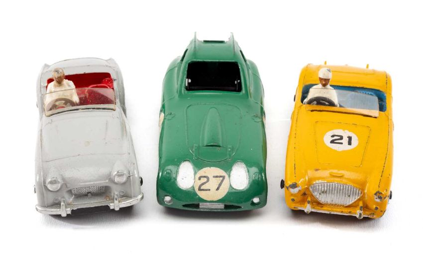 ASSORTED DINKY DIECAST SPORTS CARS, comprising 163 Bristol-450, Triumph TR2, and Austion Healey (3)Provenance: private collection Vale of GlamorganComments: All unboxed, some over painting to TR2 wheels and body, others touched up, possibly with replacement parts, inspection advised.