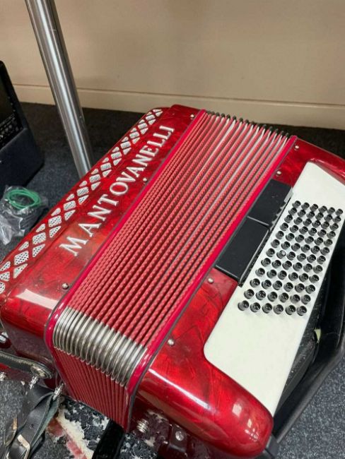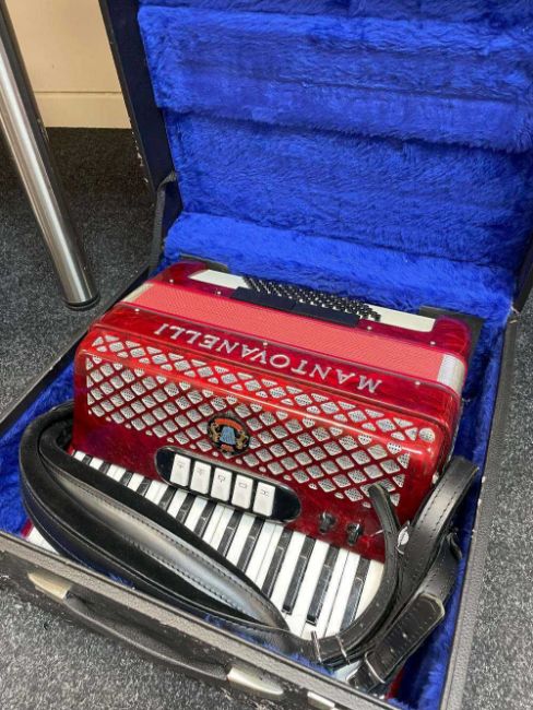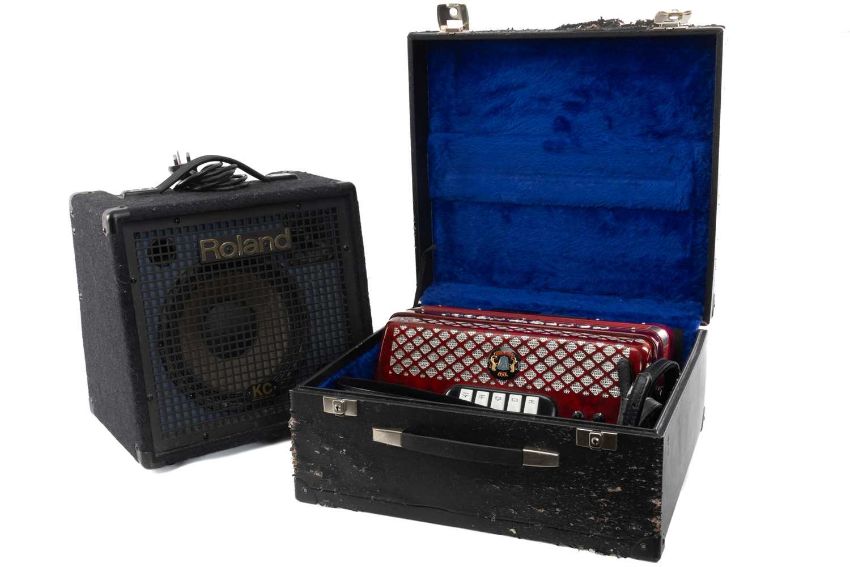 MANTOVANELLI 72 BASS PIANO ACCORDION, c..1990's, with hard-case, together with 45W Rowland KC-60 3-CH Mixing Keyboard Amplifier and associated cables (2)Provenance: private collection SwanseaComments: accordion appears to be in excellent condition, complete with carry-straps and back pad, bellows airtight, untested, the carry-case damaged by cat claws, but function is unaffected, the amplifier is untested and it is assumed all the cables are present, inspection advised.