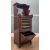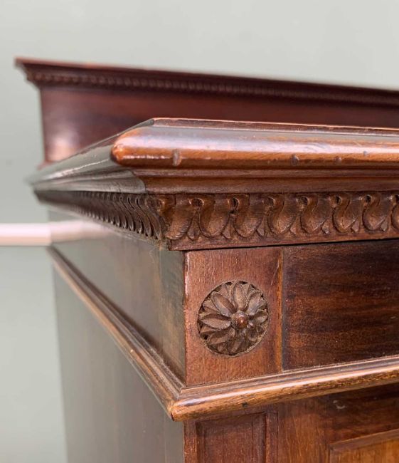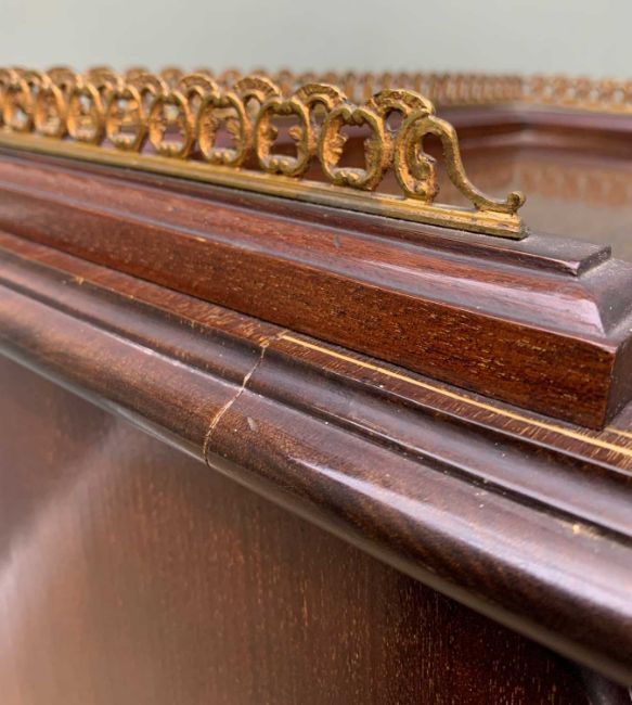 TWO ANTIQUE MUSIC CABINETS including, late Victorian mahogany box strung cabinet, serpentine galleried top, bevelled mirror, drop-flap upper glazed door, three lined shelves, two labelled, lower drop-flap with marquetry inlay of lyre, swags, ribbons and floral motifs, opens to two dividers, raised on bracket feet with castors, 127 (h) x 48 (w) x 42cms (d), plus a later mahogany cabinet, two doors open to one large compartment with four adjustable shelves, 118 (h) x 62 (w) x 45cms (d) (2)Provenance: private collection SwanseaComments: Victorian cabinet with repair as pictured, other ordinary used condition, some stains, scratches etc, inspection advised