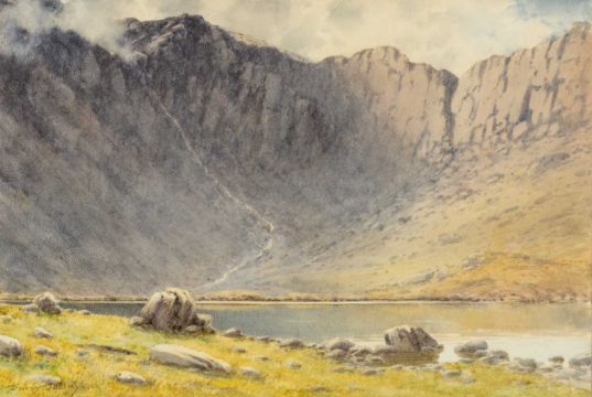 WARREN WILLIAMS (Welsh 1863-1918) watercolour - 'Devil's Kitchen and Llyn Idwal', signed, 35 x 51cms Provenance: private collection Conwy