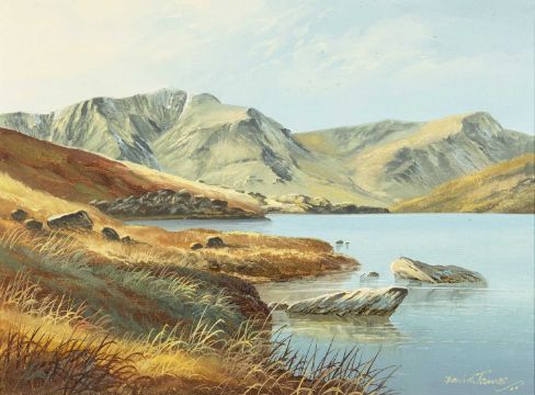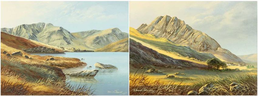 ‡ DAVID JAMES (British 20th Century) pair of oils of canvas -Eryri scenes, one being Tryfan, signed, 29 x 39cmsProvenance: private collection ConwyComments: both in dark, similar, but not identical frames