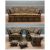MODERN KNOLE SOFA SUITE, with gilt brass knobs and drop sides, comprising three seater settee, 90 (h) x 225 (w) x 94cms (d), two armchairs, 90 (h) x 98 (w) x 94cms (d) and three associated footstools, all with matching blue and gold brocade fabric (6)Provenance: private collection PorthcawlComments: ordinary used condition, inspection advised