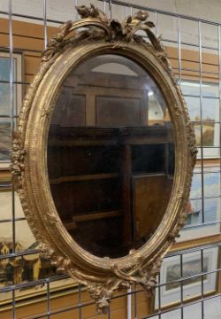 VICTORIAN STYLE GILT OVAL MIRROR with floral moulded borders, fitted with bevelled plate, 72 x 51cmsProvenance: private collection Vale of Glamorgan